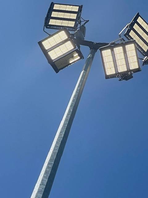 L'éclairage était vétuste, après étude avec notre éclairagiste et partenaire Disano nous avons mis en place 16 projecteurs Led sur des mats de 18 mètres d'une puissance totale de 20 kw en remplacement de l'éclairage existant.