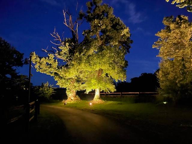 L'ensemble de l'éclairage extérieur est réparti sur une voirie de 1,2 Km qui traverse la proprièté.