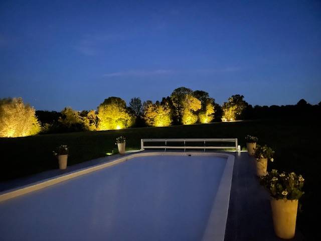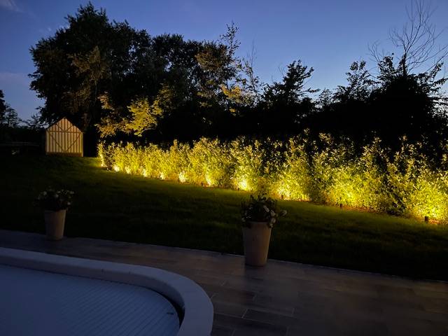 La cliente souhaitait un éclairage permettant de mettre en valeur la végétation de la propriété et de sécuriser les voies d'accès qui sont éclairées par une soixantaine de projecteurs Led Osram.