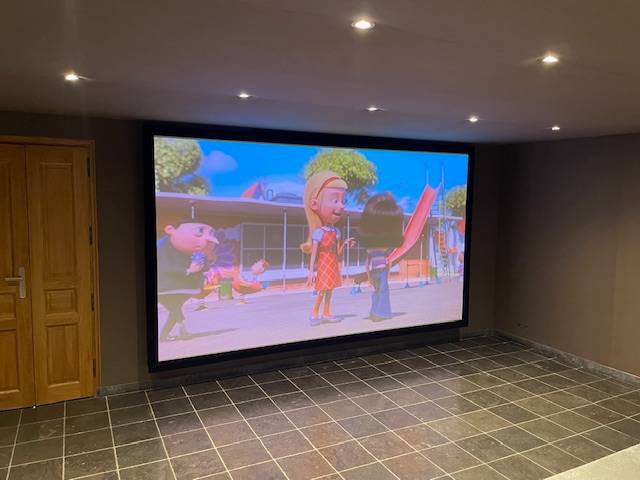 Le système permet à notre client de piloter l 'ensemble des éclairages de sa salle de projection et son écran de cinéma à l'aide de sa tablette via sa supersion Domovéa 2.